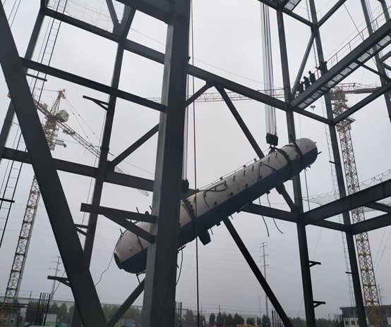 2023年9月25日上午11時,由第一公司承建的新沂市陽光熱電有限公司3×280t循環(huán)硫化床鍋爐+1×25MW抽汽背壓式汽輪發(fā)電機組搬遷項目1#鍋爐汽包一次順利吊裝就位。