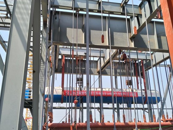 新沂市陽光熱電主廠房喜封金頂、3#鍋爐汽包一次順利吊裝就位