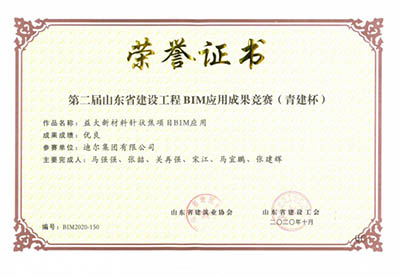 2020年10月,山東省建設工會和山東省建筑業(yè)協(xié)會舉辦了第二屆山東省建設工程BIM應用成果競賽(青建杯)活動,經(jīng)成果初評、終評答辯、競賽工作委員會審定和公示,確定76項成果為優(yōu)良成果,其中,集團申報的鈔票紙生產(chǎn)及配套裝置BIM技術應用、益大新材料針狀焦項目BIM應用榜上有名,獲得優(yōu)良成績。