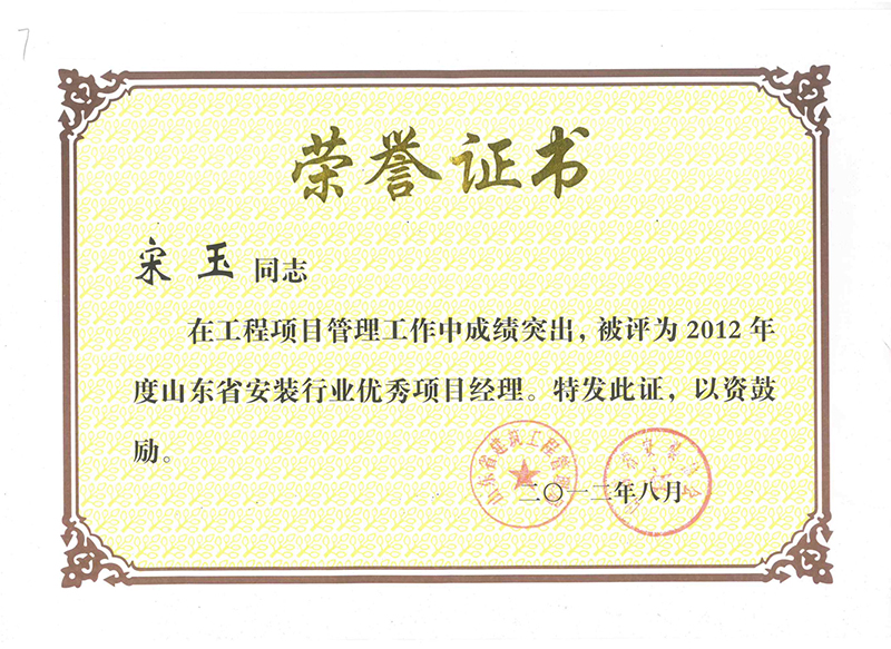 Certificate of honor