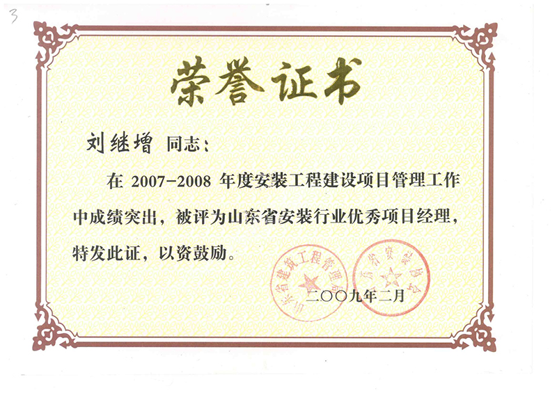 Certificate of honor