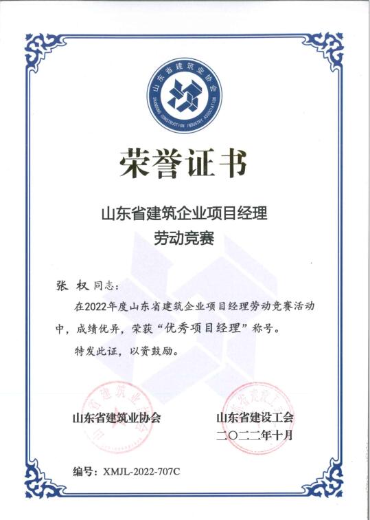 Certificate of honor